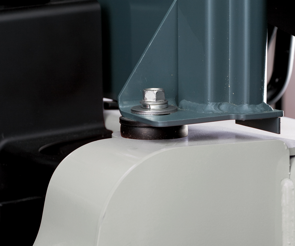 Large left and right assist grips on the arms and pillars greatly improve the ease of getting on and off the machine