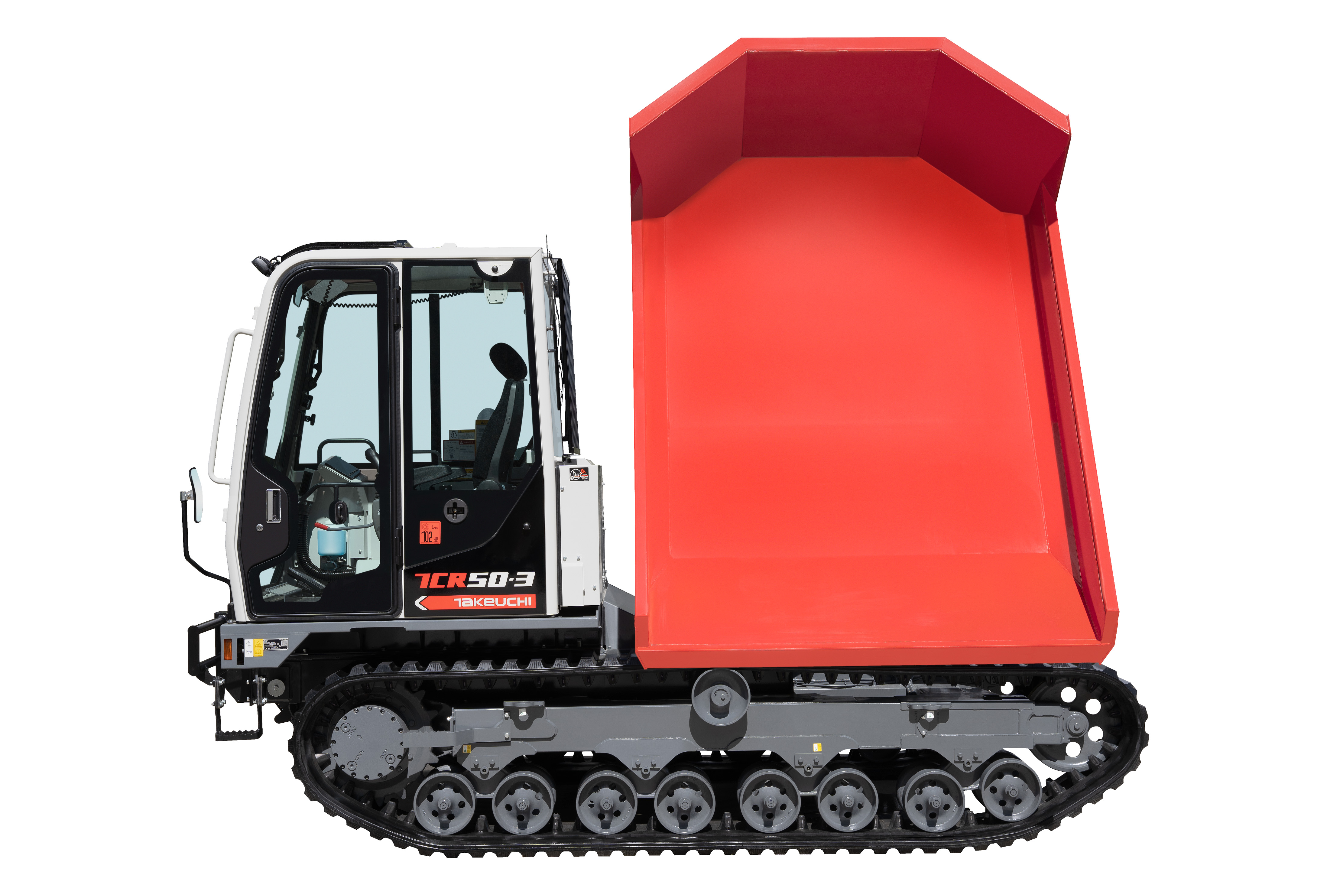 The TCR50-3 crawler dumper offers greater functionality, performance, comfort and serviceability. With an ample 65 degree dumping angle and 3,700 kg maximum loading weight, operator always get a lot of soil discharged with just a single dumping stroke. 180 degree turning dump reduces the need for unskilled operator to continually reposition the machine and it prevents early wear of rubber tracks.