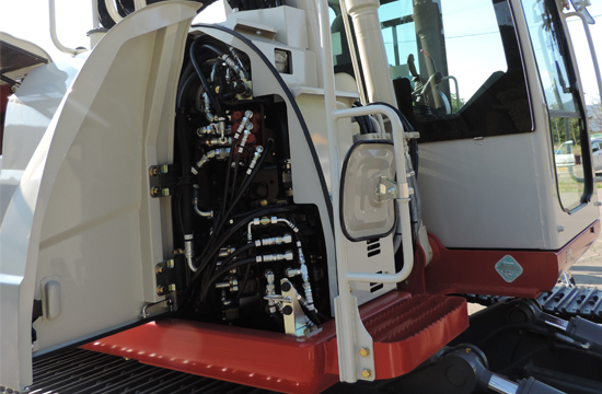 Spacious Floor – Allows the operator to be comfortable throughout the workday, and the large foot pedals fully support the operator’s feet when using the travel function.
