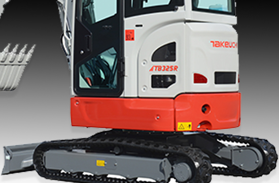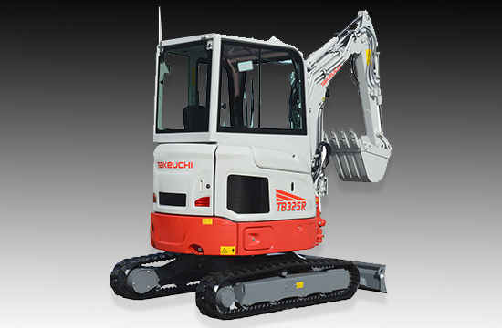 The TB325R mini excavator is a new addition to Takeuchi's 300-Series excavator line-up. This new model features a short tail-swing design which decreases the amount of overhang from the counterweight resulting in improved manoeuvrability and increased productivity on confined job sites.