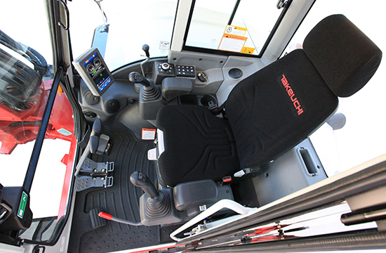 TB370 is the first model of Takeuchi’s new generation line-up, which has state-of-the-art technology and a completely redesigned automotive styled interior with intuitive user’s operation. The most machine functions and settings, including air conditioning, radio, rear / 270°view monitor (optional) and engine speed can be quickly accessed through 8” touch screen display and jog dial controls for maximum convenience.