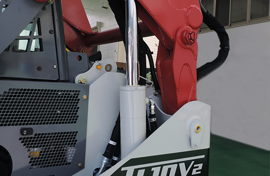 The TL12V-2 features a vertical lift loader arrangement and sets another benchmark for compact track loaders by delivering one of the most capable and innovative machines available to the market today. The cab has been completely redesigned and enlarged and now features a smooth low effort overhead door design for improved entry and egress. A quiet track design with flotation pads reduces vibration, noise levels, and improves ride quality.